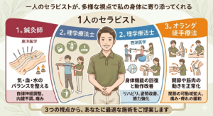 ・鍼灸師(東洋医学):神経刺激によるアプローチ。
