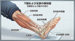 ・筋肉単体ゆるめるだけでなく、足首全体の「組織のゆとり」を取り戻すこと。